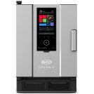 Пароконвектомат Unox XEDA0611EXRS гастрономический на 6 уровней под GN1/1 с ручным открыванием дверей справа налево.   Подключение к Интернету и порт USB. Автоматическая мойка. Термощуп. Реверс вентилятора. 2 скорости вентилятора. Подключение к водопроводу и канал..