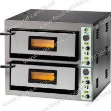 Печь для пиццы двухкамерная c электромеханическим управлением имеет переднюю панель из нержавеющей стали, корпус - из крашенной стали. Внутренний размер камеры - 660х660х150 мм что позволяет поместить в нее 2х4 пиццы диаметром 330мм. Камера имеет регулировку температуры до +450С. Дно камеры..