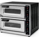 Печь для пиццы двухкамерная PRISMAFOOD BASIC XL66L c электромеханическим управлением имеет переднюю панель из нержавеющей стали, корпус - из крашенной стали. Внутренний размер одной камеры - 1080х720х140 мм что позволяет поместить в нее 6 ( а в целом в печи 12) пиццы диаметром 350мм. Мощность верхнего и нижнего ТЭНов в камере по 2350Вт. Камера имеет регулировку температуры от +50  до +500°С. Дно камеры выложено огнеупорным камнем. Печь оснащена внутренней подсветкой, жаропрочным смотровым окном в дверце, термометром. В печи 2 термостата.
