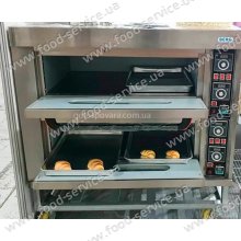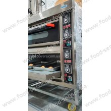 Піч подова Berg HEO-24A двоярусна з електромеханічним керуванням з парогенератором та кам'яним підом є професійним обладнанням та застосовується в супермаркетах, механізованих пекарнях, ресторанах, у кондитерських виробництвах, на підприємствах громадського харчування. Випічка, вироблена в подових печах, відрізняється високою якістю за рахунок рівномірного розподілу температури та парозволоження всередині пекарної камери. Під - це металева або керамічна плита, безпосередньо на якій проводиться випічка. Випічка ставиться на підформах чи деках.   Кам'яний під. Одна камера з парозволоженням. Місткість – 4 деко 600х400 мм. Температурний режим +50…+320 ⁰С. Внутрішній розмір: 850х650 мм. Підключення до 380 В. ...