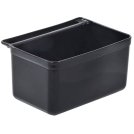 Пластиковая черная емкость Berg 190b для тележки.   Подходит для тележек 19039 и 19040 и помогает убирать грязную посуду и легко снимать для мытья. Используют для перевозки столовых приборов и чистящих инструментов.   Длина 325мм. Ширина 240мм. Высота 175мм. ..