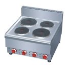 Плита электрическая 4-х конфорочная без духового шкафа Lors EO.663 с продольным расположением конфорок. Каждая конфорка снабжена регуляторами теплового режима и световым индикатором, который сигнализирует о включении конфорки. Плита полностью изготовлена из нержавеющей ста..