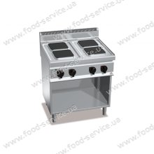Напольная электрическая плита Bertos E7PQ4M с 4-мя квадратными конфорками, без  духовки, на открытой базе.
