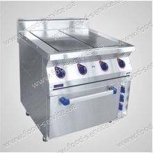 Плита электрическая с жарочным шкафом ЭПК-47ЖШ предназначена для приготовления первых, вторых и третьих блюд в наплитной посуде, а также для варки полуфабрикатов из мяса, рыбы, овощей, выпечки мелкоштучных мучных изделий и запекания творожных блюд на предприятиях общественного питания самостоятельно или в составе технологических линий. Чугунные конфорки в качестве нагревательных элементов оснащены двумя ТЭНами, что обеспечивает быстрый и равномерный нагрев, а также гарантирует долгий срок эксплуатации конфорок. 4-х позиционны пакетные переключатели позволяют регулировать мощность конфорок и жарочного шкафа. Площадь конфорок - 0,36 кв.м. Конфорки образуют ровную поверхность, что обеспечивает удобное и легкое перемещение наплитной посуды. Внизу - жарочный шкаф с тремя противнями размером 530х470х30 мм, изготовленные из черного металла. Духовка имеет раздельную регулировку мощности верхнего и нижнего блоков ТЭНов. Аварийный терморегулятор предохраняет шкаф от перегрева. Плита имеет регулируемые по высоте ножки. Столешница и лицевая обшивка выполнены из нержаве...
