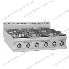 Плита газовая 6 конфорочная настольная GoodFood GP4 - изготовлена из пищевой нержавеющей стали. Горелки: 6 * 32,925 МДж. Размер горелки 6 X Ø156 mm. Горелки быстрого разогрева. Чугун/латунь с высоким КПД. Мощность газа 5,5 кВт. Расход газа 1,80 м3 / ч. Применяется для природного или..
