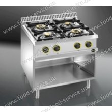 Газовая плита на открытом стенде 700-й серии Apach APRG-77P с четырьмя конфорками, две из которых имеют мощность 3,5 кВт, а две другие - 6 кВт. Съемные газовые горелки, изготовленные из глазированного чугуна, оснащены стабилизатором пламени.