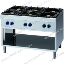 Плита газовая 6 конфорочная MODULAR CEG-110 - изготовлена из пищевой нержавеющей стали с горелками быстрого разогрева. Профессиональная 6-и конфорочная газовая плита на открытой подставке используется для тепловой обработки продуктов в наплитной посуде. Секционно-модульное исполнение.