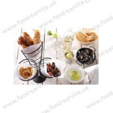 Проволочная подставка для подачи картофеля-фри. Данную подставку можно использовать для подачи различных продуктов, приготовленных во фритюре: чипсов, сыров, морепродуктов, луковых колец, нагетсов.     ..