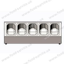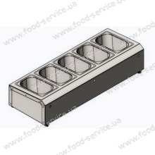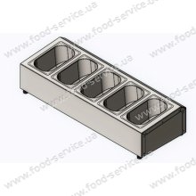 Подставка из нержавеющей стали вмещает 5 гастроемкостей размера GN 1/4 (162х265 мм).