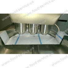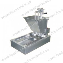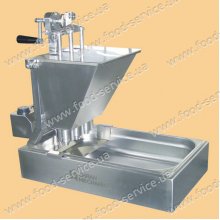 2. Ручной дозатор с тремя поршнями. Установлен над фритюрной ванной на специальном кронштейне. Он имеет уникальную головку для формирования пончиков разной массы и выдавливает три пончика одновременно