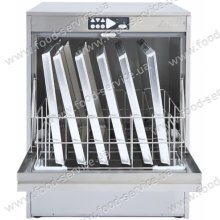 Посудомоечная машина Frosty AT60 400V для подносов, тарелок и стаканов котломоечная 3ph фронтальной загрузки используется для мытья подносов, наплитных кастрюль, гастроемкостей GN 1/1, листов для выпечки умещается.   Цифровой дисплей LED. Дисплей температуры. Производительность 30/20/15 корзин в час. Максимальная высота отверстия/тарелек h=400 мм. 3 моечных цикла 2, 3 и 4мин. Расход воды при ополаскивании: 2,8л/цикл. Объем моющего бака 24л. Рекомендуемая температура воды +55ºС. Допустимое давление подачи воды 2-4бар.   В комплекте: - дозатор ополаскивающего средства - дозатор моющего средства - 1 корзина универсальная 500х500 мм - 1 корзина из нержавеющей стали для подносов 600х400х100h мм - 1 корзина для столовых приборов   Для того чтобы мыть разный инвентарь, включая столовую посуду и стаканы необходимо дополнительно заказать комплект корзин для 18 тарелок.   Корпус, двери и резервуар выполнены из нерж. стали AISI 304 полностью запрессованы и имеют эффективную акустическую и термическую двойную изоляцию. Моющие и ополаскивающие рукава, фильтр моющего резерв...