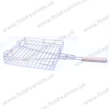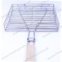 Решетка для мангала решётка изготовлена полностью из пищевой  нержавеющей стали. Прут - диаметром Ø5,0 и 3,0мм. Размеры рабочей части: 300х300мм. Предусмотрено 2 уровня установки верхней решетки. Удобная деревянная ручка....