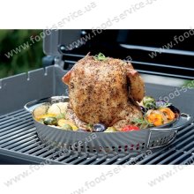 Подставка для курицы и овощей из нержавеющей стали - аксессуар для системы GOURMET BBQ System. Дизайн подставки "два в одном" позволяет готовить овощи и/или запекать птицу. Конструкция ростера позволяет наливать маринад (вино, пиво или любую жидкость по вашему выбору) и пропитывать птицу изнутри. При нагреве жидкость закипает и циркулирует внутри птицы, в то время как снаружи мясо запекается. Результат - вкусное и сочное блюдо. Все элементы выполнены из нержавеющей стали. Аксессуар можно мыть в посудомоечной машине. Подставка для курицы и овощей подходит для угольных и газовых грилей с модулем GBS.