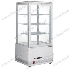 Шкаф холодильный Frosty RT-78B-3 white настольный.   Объем 78л. Стекло из четырех сторон. Двойные стеклопакеты. Замок. 3 окрашенные полки-решетки 355х305мм. Можно изменять высоту полок. 2-сторонняя боковая LED подсветка. Цифровой регулятор температуры и дисплей. Ночью 0...+12°C. Вентилируемая система охлаждения. Наружная стекольная обдувка с четырех сторон. Авторазмораживание.   Корпус выполнен из белого пластика. ...