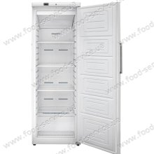 Объем 304л. Температура -18...-25°C. Цифровой контроллер температуры с дисплеем. Статическое охлаждение. Ручное размораживание. Температура окружающей среды +33°С. 2 передних регулируемых ножка и 2 задних ролика.   Дверь глухая реверсивная с замком.  ..