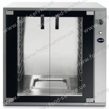 Расстоечный шкаф  применяется в пекарнях малой мощности совместно с печами  одного формата. Шкаф оснащен простой системой пароувлажнения и имеет возможность плавного регулирования температуры. В выдвижной подднон с губкой в нижней части расстоечного шкафа наливается вода; расположенный внизу тэн нагревает воду в поддоне и вызывает ее испарение; таким образом , внутри шкафа образуется влажная и теплая среда, необходимая для расстойки дрожживых изделий. При расстойке полуфабрикаты выдерживают в расстоечном шкафу в течение 60 минут при температуре 40-45 градусов; при этом дрожжевые изделия " поднимаются ", увеличиваясь в объме примерно в 1,5-2 раза.