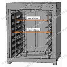 Расстоечный шкаф на 9 противней комплектуется направляющими (по предварительному согласованию) под противень 435х340мм или 460х330мм. Данный растоечный шкаф подходит как под отечественные небольшие конвекционные печи так и под печи импортных производителей, таких как Unox (Италия), модели XF 023 ..