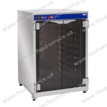 Заданная температура процесса расстойки поддерживается автоматически. Визуальный контроль процесса прост, поскольку осуществляется через стеклянные двери.  Конструкция оборудования обеспечивает равномерное распределение температуры по всему объему шкафа. Высота между направляющими для противней – 80 мм.