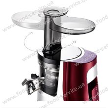 Прозрачный загрузочный лоток и загрузочная воронка позволяют наблюдать за процессом приготовления сока. Дополнительное удобство - 4-х градусный наклон загрузочного входа для комфортной загрузки круглых ингредиентов. Возможно установить загрузочный лоток в двух направлениях, поскольку с двух сторон загрузочного лотка есть датчики для корректной сборки.