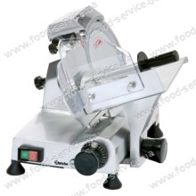 Слайсер изготовлен из анодированного алюминия, оснащен затачивающим устройством. Обеспечивает быструю и точную нарезку ломтиков заданной толщины в диапазоне от 0,2 до 17 мм.  Простота в использовании и безопасность этих приборов сделали их очень популярными, как в Украине, так и за рубежом. Но все же, главное достоинство промышленных слайсеров – сокращение в несколько раз времени, потраченного на нарезку продуктов.