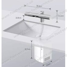 Подставить руки под сенсорный кран посередине, чтобы помыть, а затем переместить в боковые зоны для сушки.