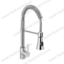 Смеситель с душирующим устройством с изливом применяется для установки на моечные ванны в кафе, барах, ресторанах, цехах и других местах для мойки посуды инвентаря и продуктов. Изготовлен из хромированной латуни Гибкий шланг в оплетке и в нержавеющей пружине Излив ..