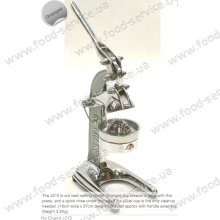 Производитель: RA Chand Products, Мексика / Соковыжималка для: цитрусовых и гранат / Тип отжима: Ручной пресс / Вес, кг: 5.50 / Габаритные размеры (ДхШхВ), мм: 230x350x750