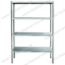 Стеллаж производственный 4 полки (ребро по длине) 1200х400х1800мм (ножки приварены по торцам) 4S6.   Предназначены для выкладки продуктов в холодильных и морозильных камерах, посуды в моечных отделениях на профессиональных кухнях, активно применяются на складах. Стеллажи ра..