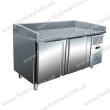 Стол для пиццы с гранитной столешницей и салат-баром Frosty PS900GT - используется в кафе, барах, ресторанах для приготовления пиццы. Внутри стола хранятся тестовые заготовки и проходят процесс ферментации, на гранитной столешнице готовят краст и укладывают начинку, а в охлаждаемой витрине..