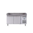 Холодильный 2-х дверный пиццерийный стол с гранитной столешницей, с бортом. Оснащен встроенным агрегатом. Имеет динамическое охлаждение. Температурный режим -2...+8°C. Корпус выполнен из нержавеющей стали AISI 201. В комплекте: 7 пар направляющих на каждую дверцу дл..