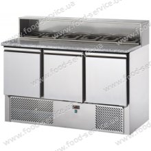3-х дверный холодильный стол-саладетта Forcold G-PS900-FC выполнен из нержавеющей стали. Имеет отсек для гастроемкостей с телескопичсеской крышкой, вместимость 5хGN1/6 глубиной до 150 мм (гастроемкости - опция) 1 решетчатая полка GN 1/1 с пластиковым покрытием в каждом отделении. Темпера..