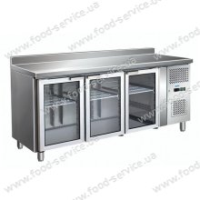Три стеклянные двери, с бортом, мотор справа, толщина столешницы - 35 мм. Объем - 465 л. Воздушное охлаждение компрессора, автоматический слив конденсата. Внутренний и внешний корпус выполнен из нержавеющей стали. Хладагент R134A. Толщина термоизоляции стенок - 60 мм. Максимальная температура окружающей среды  +43°C   ...