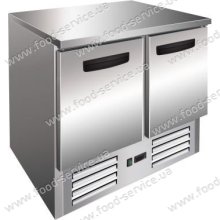 Двухдверный холодильный стол с шкафом SARO ECO S 901 s/s TOP с нержавеющей столешницей предназначен для работы в температурном диапазоне +2...+8С.
