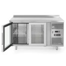 Двухдверный холодильный шкаф с бортом Hendi 232429 с стекляными дверями и нержавеющей столешницей предназначен для работы в температурном диапазоне +2...+8С. Оснащен цифровым дисплеем. Агрегат Aspera расположен в правой части стола. Принудительное охлаждение. Внутренний и внешний ..