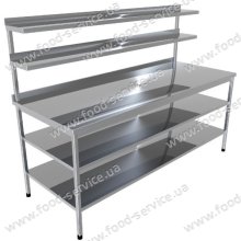 Стол производственный с 2 нижними полками и полками-надстройками, высота — 850, мм