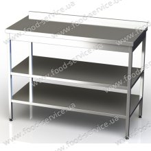 Столешница выполнена из пищевой нержавеющей стали 0,8мм. Полки выполнены из пищевой нержавеющей стали 0,8мм. Каркас выполнен из пищевой нержавеющей стали 1мм. Регулировка по высоте: +/-25мм. Высота 850мм (без учета борта).   Дополнительная комплектация: - столешни..