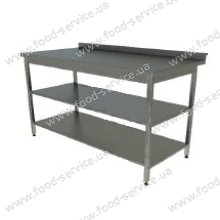 Столешница выполнена из пищевой нержавеющей стали 0,8мм. Полки выполнены из пищевой нержавеющей стали 0,8мм. Каркас выполнен из пищевой нержавеющей стали 1мм. Регулировка по высоте: +/-25мм. Высота 850мм (без учета борта).   Дополнительная комплектация: - столешни..