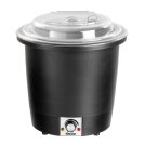 Супница Bartscher Partytopf электрическая, настольная вместимостью 9 л оснащена регулятором температуры для поддержания супа в теплом состоянии.  Внешний корпус супницы выполнен из эмалированной черного цвета нержавеющей стали. - съемная вставка из нержавеющей стали - откидная крышка..