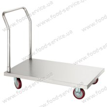Тележка для перевозки товара предназначены для перемещения на предприятиях общественного питания товара, продуктов. Тележки имеют прочную сварную конструкцию, снабжены колесами, смягчающими вибрацию. Пара колес тележки поворотные, другая пара зафиксирована. Диаметр колес - 125мм. Грузоподъемность тележки – 200 кг . Прекрасный дизайн тележки позволяет использовать их как в рестораных, столовах, так и в готельном бизнесе. Технические характеристики: Допустимая нагрузка, кг - 200; Размер рабочей поверхности, мм - 560*940; Материал корпуса - нержавеющая сталь; 4 ролика Ø125мм; Габариты тележки, мм - 1050х560х940,   Вес, кг. - 14,4.    Артикул:  300142...