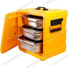 Для хранения, перевозки и подачи блюд в гастроемкостях GN1/2. Корпус - двойная стенка из пенопропилена. Пространство между стенками заполнено пенопулеуретаном, что обеспечивает сохранение температуры. Крышка плотно закрывается на замок специальной конструкции. Клапан для выравнивания давления. Возможность штабелирования. Крышка съемная для удобства загрузки. 4 направляющих для гастроемкостей. Гастроемкости в комплект не входят. ...