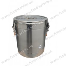 Термоведро - это специальная ёмкость, в которой помещенный внутрь продукт защищен от действия низких или высоких температур на определенное время. Принцип действия - обычный термос, который благодаря своей конструкции прекрасно сохраняет исходную температуру продукта. Термоведро изготовлено полностью из нержавеющей стали. Крышка имеет специальный уплотнитель и благодаря крепким зажимам плотно прилегает к емкости. Такая конструкция гарантирует, что продукт не прольется при перевозке. Предназначен для транспортировки пищи с сохранением её температуры (холодной или горячей). Применяется для выездной торговли, кейтеренга, для организации фуршетов на открытом воздухе и в местах, где нет возможности использовать электроэнергию.