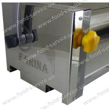 Зазор между валками регулируется от 0,2 до 15 мм. Изготовлена полностью из нержавеющей стали и имеет металлические шестерни. Тип управления: механическая. Крепление ручки: под правую руку. Струбцины для крепления к столу. Верхняя подача теста под углом обеспечивает удобное и качественное раскатывание. ...