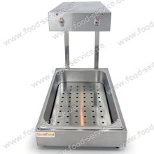 Апарат для підігріву чіпсів GoodFood CW30S застосовується для зберігання картофелю фрі та чіпсів в теплому стані. Застосовується для зберігання картофелю фрі та чіпсів в теплому стані.  Підігрів зверху за рахунок лампи накалювання.  Підсвічування товару зверху.  Корпус виготовлений із нержавної сталі.  У комплекті 1 ємність GN 1/1, 65 мм глибина з нержавної сталі та 1 перфорований лист. Температурний режим 30-85 С. ...