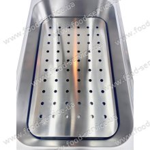 У комплекті 1 ємність GN 1/1, 65 мм глибина з нержавної сталі та 1 перфорований лист.