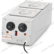 Виробник: GoodFood, Китай / Напруга, В: 220 / Потужність, кВт: 1.0 / Наявність гастроємностей: в комплекті / Кількість гастроємностей: 2 / Вага, кг: 3.5 / Габаритні розміри (ДхШхВ), мм: 220x480x160