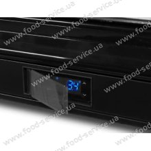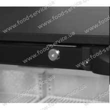 Корпус виготовлений з нержавіючої сталі.   Загальний об'єм 208 л. 4 полиці. Освітлення: LED. Потужність: 0,133 кВт. Динамічна система охолодження. Температура від 0 до +8 °C. Автоматичні розпашні двері. Чорний колір. Цифровий термостат. Загартоване..
