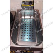 Чебуречниця 15л., на відміну від фритюрниці, комплектується замість сітки (кошика) вставкою з нержавіючої сталі (приклад зображено на фото).