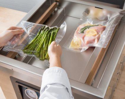 Зменшення кількості харчових відходів та уникнення псування продуктів є важливими для будь-якого закладу громадського харчування, і використання вакуумного упаковщика - чудовий спосіб досягти цього! Продукти, упаковані у вакуумі, можуть зберігатися в 3-5 разів довше, ніж незавакуумовані продукти, до того ж вони будуть кращими на смак, оскільки вакуумна упаковка усуває більшість факторів, що призводять до їх псування. Упаковані у такий спосіб продукти передаються на зберігання у холодильну або морозильну шафи.