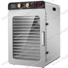Корпус та решітки виконані з нержавіючої сталі, двері зі скла.   Країна походження Китай. 12 рівнів. Решітки розміром 390x363мм. Відстань між решітками 25мм. Температура від +30 до 90°С. 1 вентилятор. Таймер до 12 годин. Рівень шуму від 42 до 45дБ. Пот..