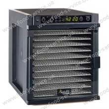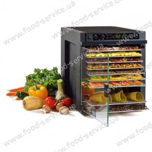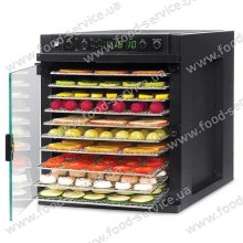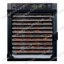 Дегідратор на 11 лотків має цифровий таймер і великий простір для висушування. Він без зусиль впорається з будь-якими овочами, фруктами, зеленню, приготує пастилу, зав'ялити м'ясо і рибу. Може використовуватися для готування йогуртів або зростання тіста. Цифровий контролер може налаштовувати температурний режим в два етапи, що дає можливість заощадити час і робить апарат практично повністю автоматизованим.